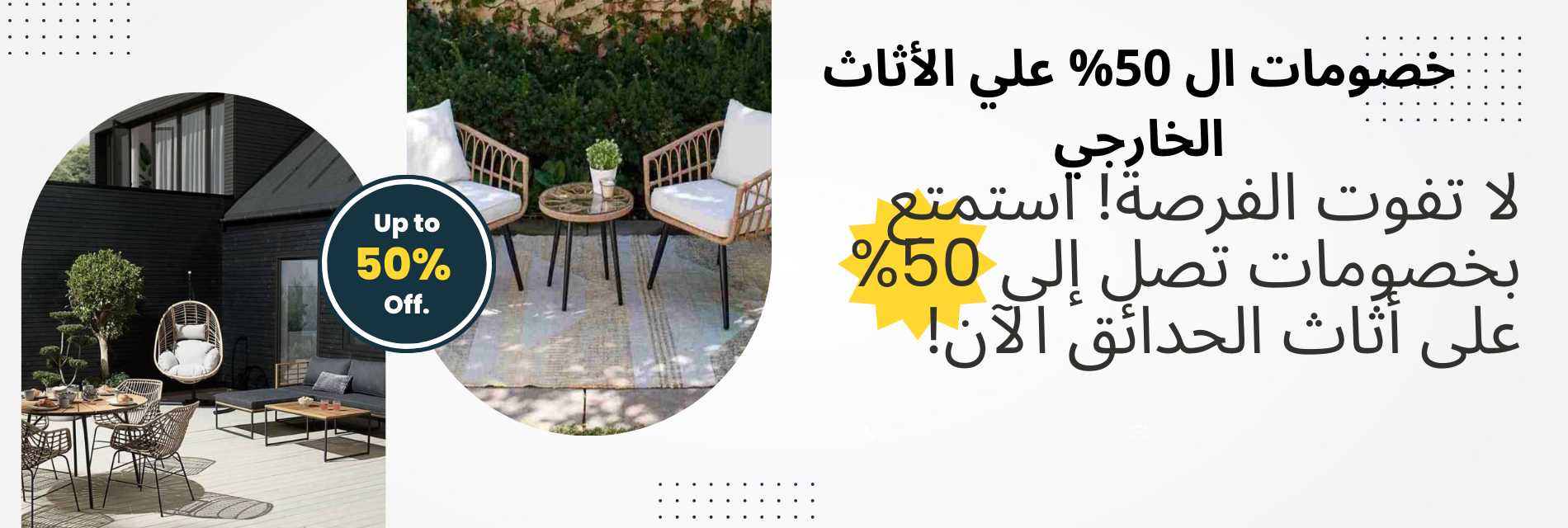 حقق التوازن المثالي بين الفخامة والراحة مع أثاث خارجي يُلبي كل تطلعاتك. خصوماتنا الحالية تصل إلى 50% تجعل تجربتك معنا أكثر سهولة وراحة.