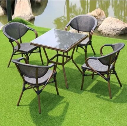 طقم كراسي ميش مودرن أنيق مع ترابيزة طعام للحديقة والفناء