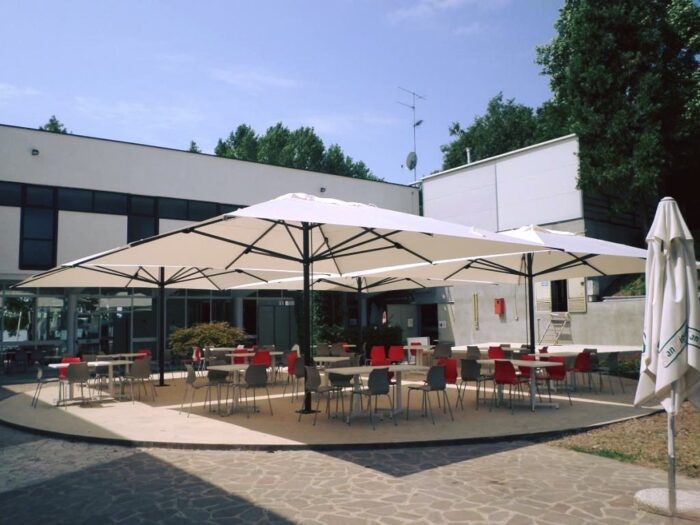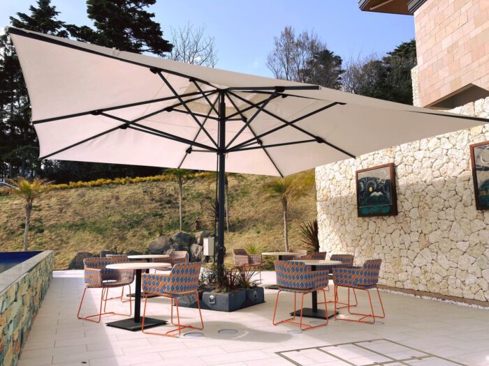 تتميز الشماسي بتصميم مودرن وعملي يناسب أجواء الكافيهات الراقية والمطاعم المفتوحة.