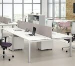مكتب حديد وأم دي اف أبيض ورمادي من e-metallic يجمع بين المتانة والأناقة العصرية في تصميم عملي: