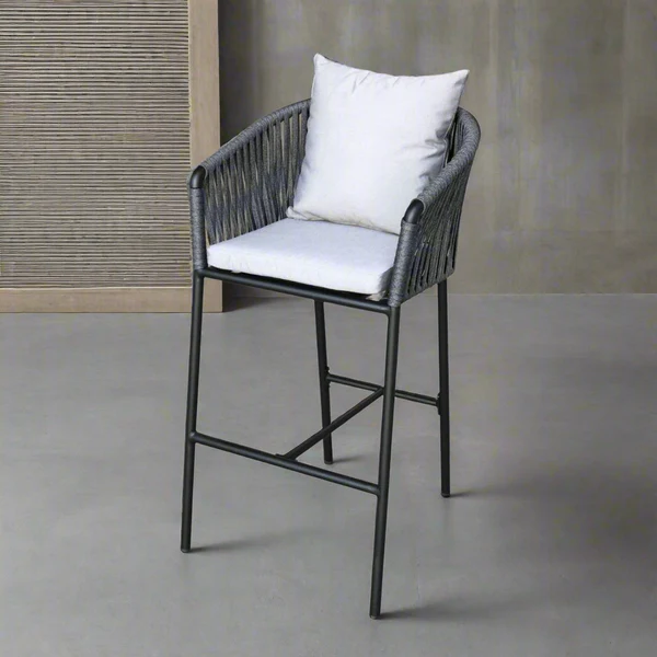 تأتي الكراسي بتصميم عصري يجمع بين الراحة والبساطة، لتناسب ديكورات الكافيهات والمطاعم الحديثة. الألوان الأنيقة — أحبال رمادي غامق × قماش رمادي فاتح — تضيف لمسة فخمة لأي مساحة وتجعلها أكثر ترحيبًا وأناقة. التصميم مريح ومناسب للاستخدام الطويل بفضل الانحناءات المدروسة التي تدعم الظهر والجلسة.
