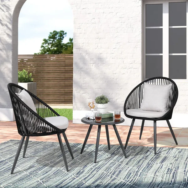 يتميز التصميم بلمسة مودرن راقية تجمع بين الفخامة والبساطة، باللون الأسود الأنيق للأحبال مع قماش رمادي فاتح يمنح مظهرًا راقيًا يتناغم مع أي ديكور خارجي. الطقم مصمم ليمنحك راحة مطلقة بفضل شلتاته السميكة بسمك 7 سم.