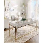 مكتب ستانلس ستيل بطلاء PVD لامع وHPL أبيض من e-metallic هو الخيار المثالي لمن يبحث عن مزيج بين الفخامة والمتانة: